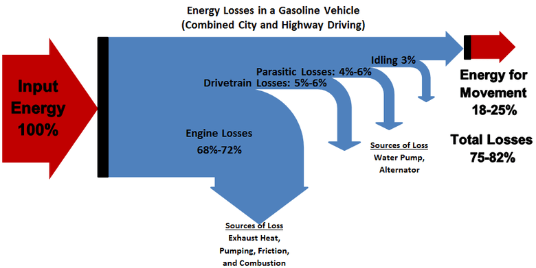 Any deliberate conversion of energy is inefficient. Some energy will be “lost”, which means converted to an unwanted form of energy. Usually the lost energy is heat. Over half of the energy of an internal combustion engine goes into heating the surrounding air, which wasn’t the point. The same goes for a whirring turbine in a power station, though to a lesser extent.